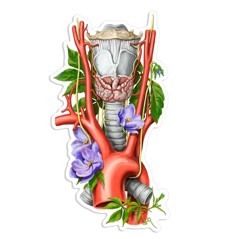Beautiful larynx, aorta and thyroid anatomy vinyl sticker. Perfect for applying to laptops, mugs, notebooks, water bottles and pretty much anything else!