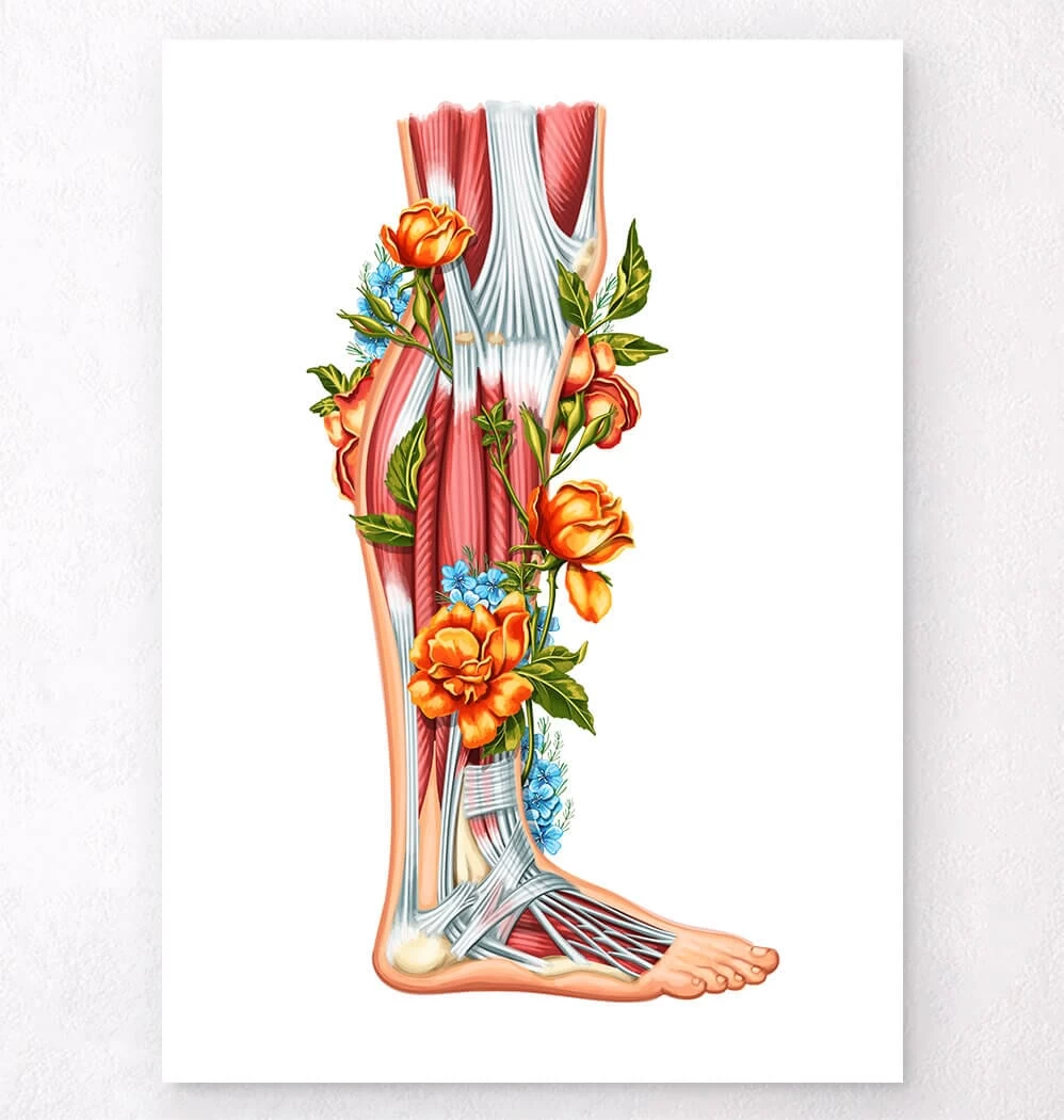 Also available on black and vintage backgrounds. This leg anatomy art print is a wonderful addition to any interior and will make a perfect gift for doctors, nurses and medical students