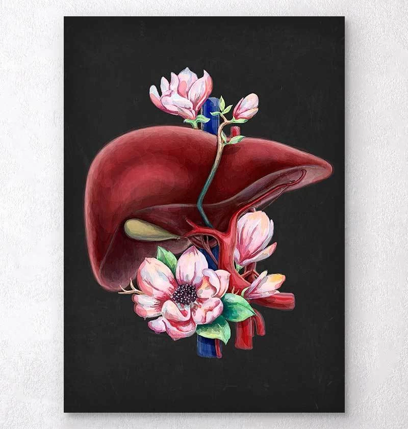 Also available on white and vintage backgrounds. This liver anatomy art print is a wonderful addition to any interior and will make a perfect gift for doctors, nurses and medical students
