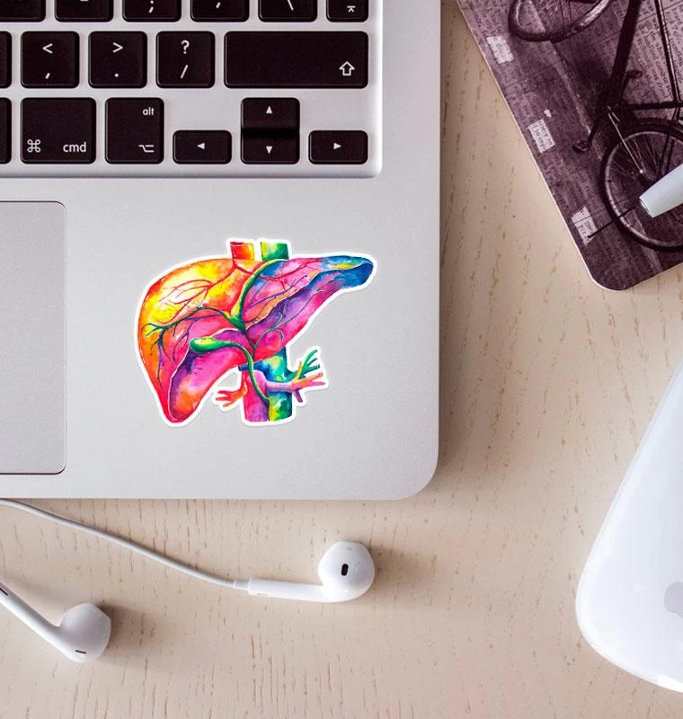 Beautiful liver anatomy vinyl sticker. Perfect for applying to laptops, mugs, notebooks, water bottles and pretty much anything else!