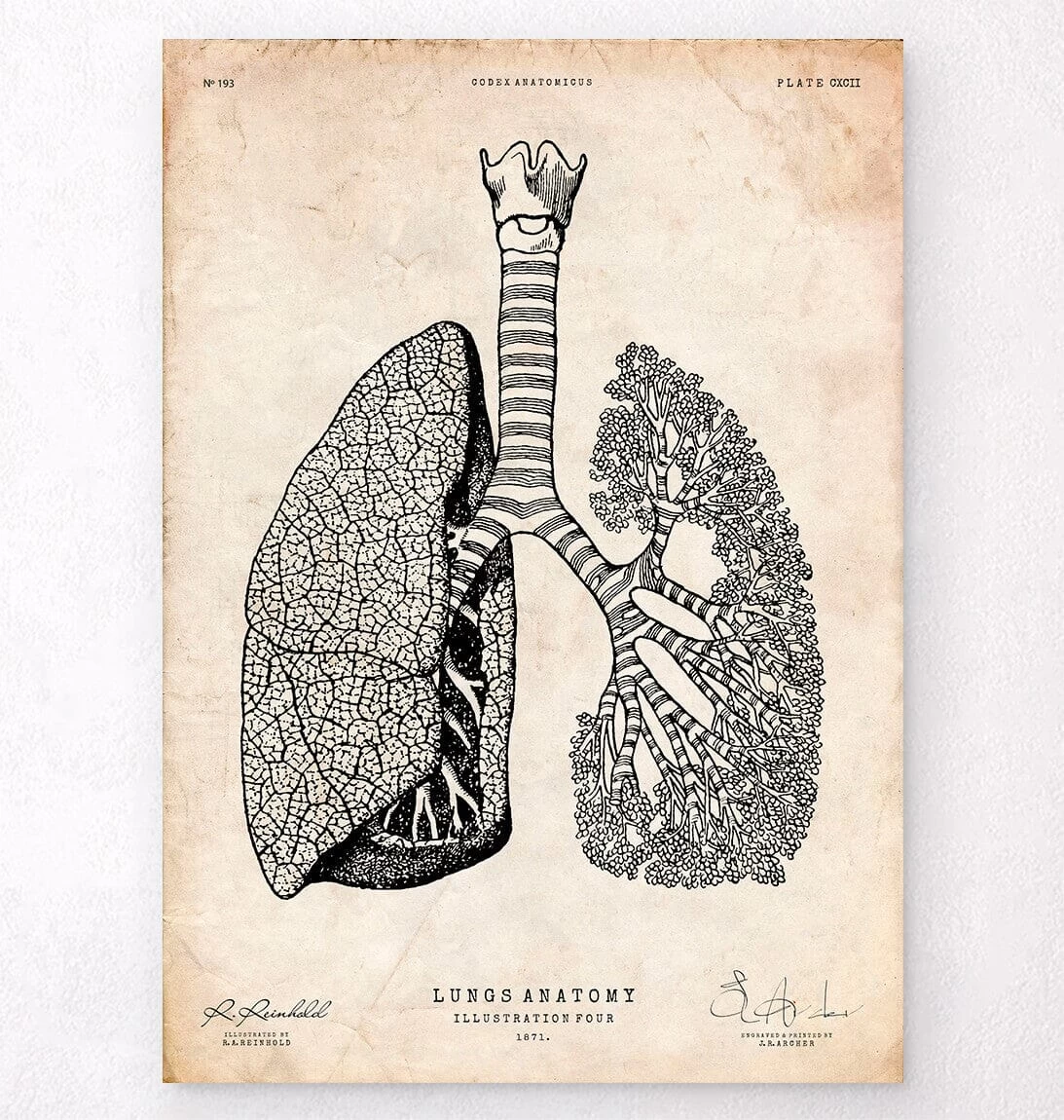 This lungs anatomy art print is a wonderful addition to any interior and will make a perfect gift for doctors, nurses and medical students