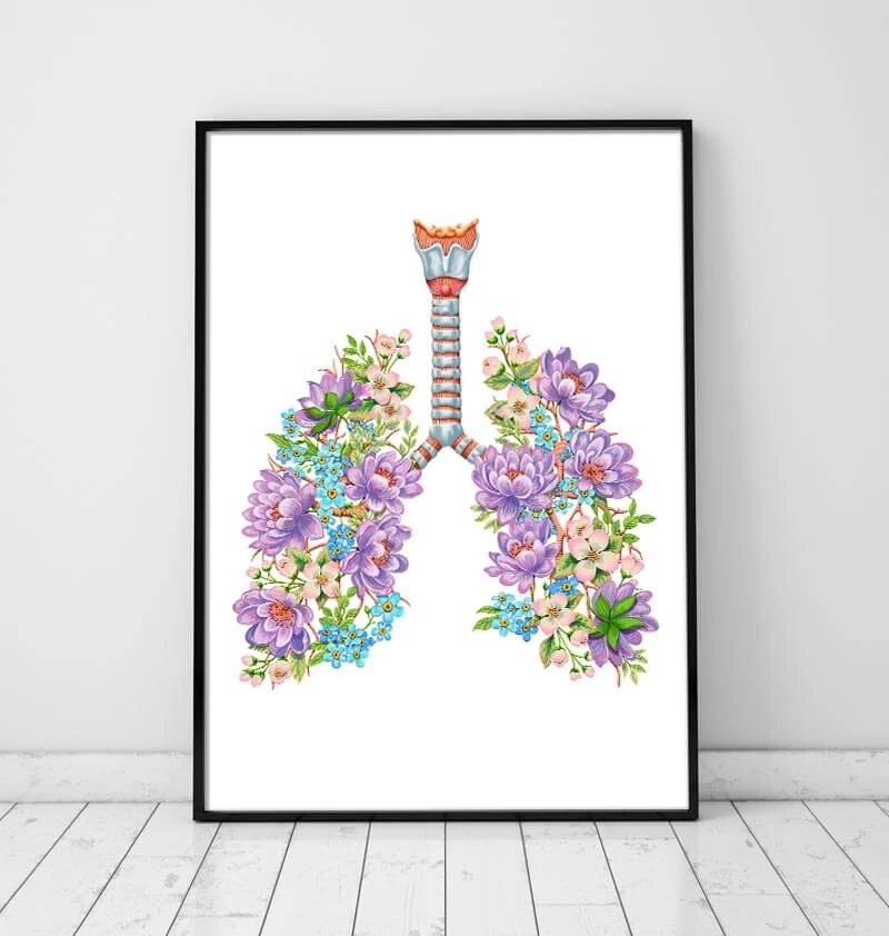 Also available on black and vintage backgrounds. This lungs anatomy art print is a wonderful addition to any interior and will make a perfect gift for doctors, nurses and medical students
