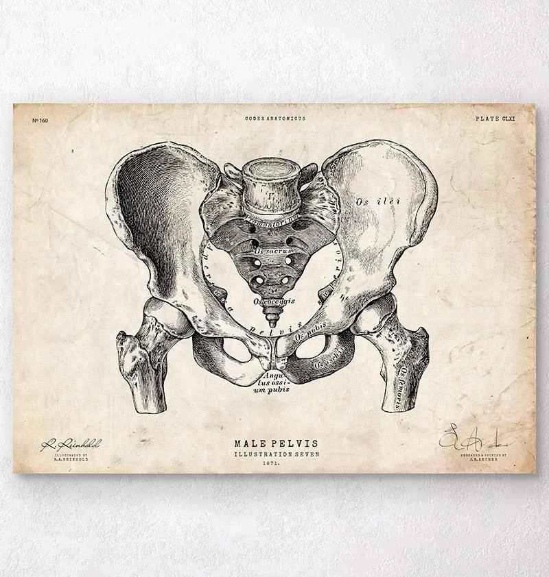 This male pelvis anatomy art print is a wonderful addition to any interior and will make a perfect gift for doctors, nurses and medical students