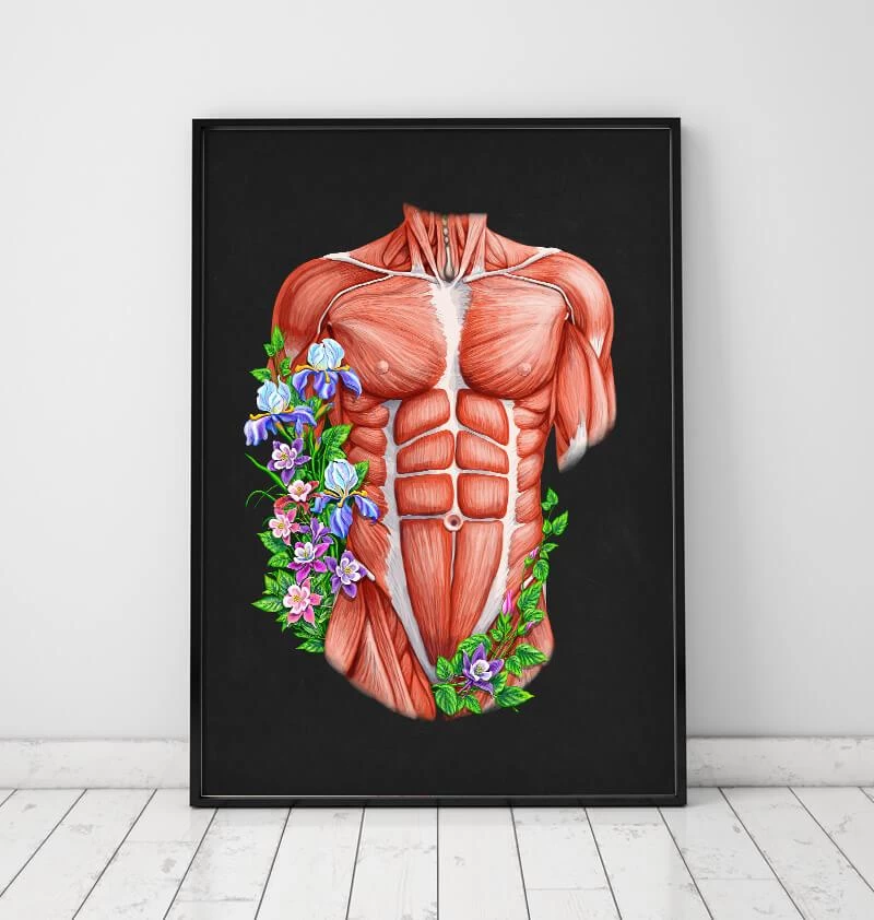 Also available on white and vintage backgrounds. This muscles anatomy art print is a wonderful addition to any interior and will make a perfect gift for doctors, nurses and medical students.