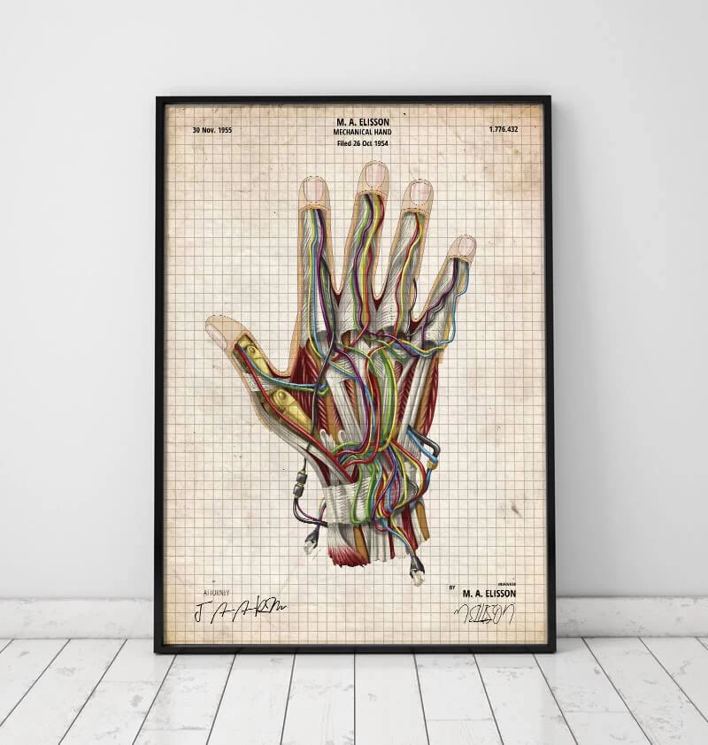 This mechanical hand art print is a wonderful addition to any interior and will make a perfect gift for doctors, nurses and medical students