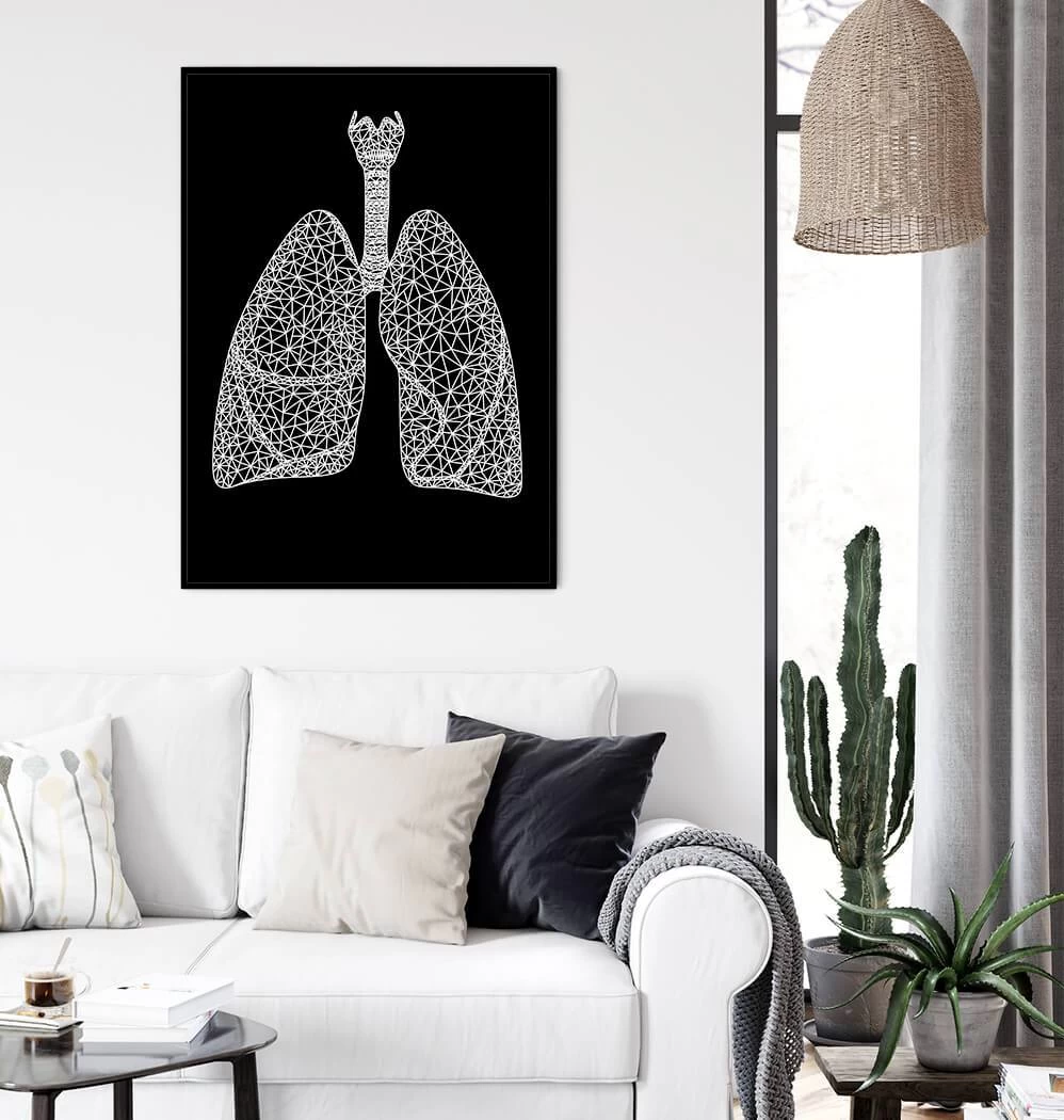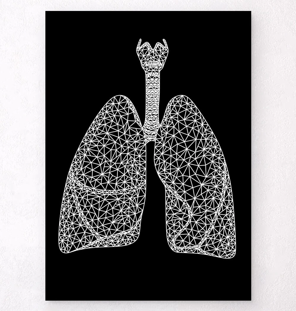 This lungs anatomy art print is a wonderful addition to any interior and will make a perfect gift for doctors, nurses, and medical students. Also available as a black outline on a white background.