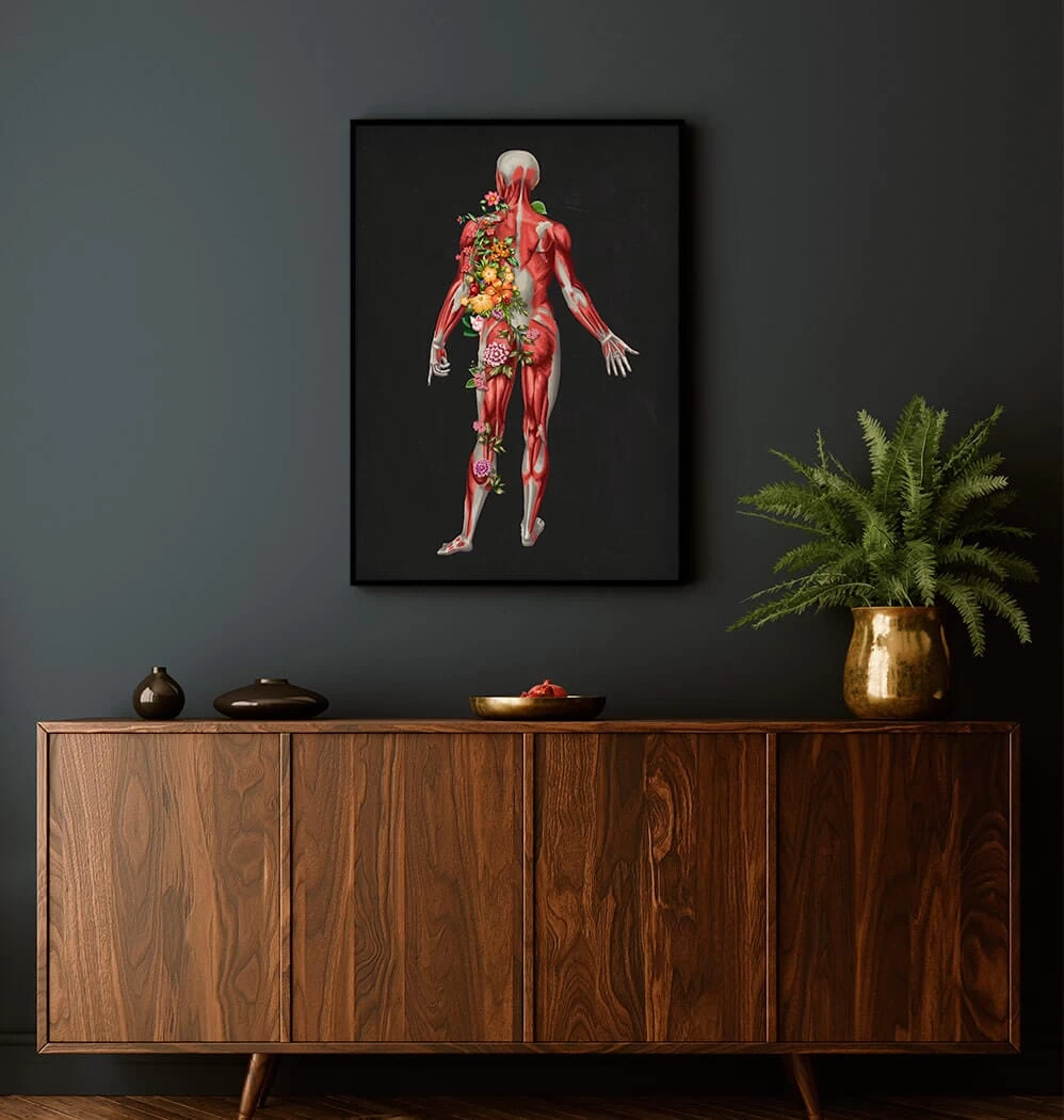 Also available onย whiteย andย vintageย backgrounds. Thisย muscles anatomy art printย is a wonderful addition to any interior and will make a perfect gift for doctors, nurses, and medical students.