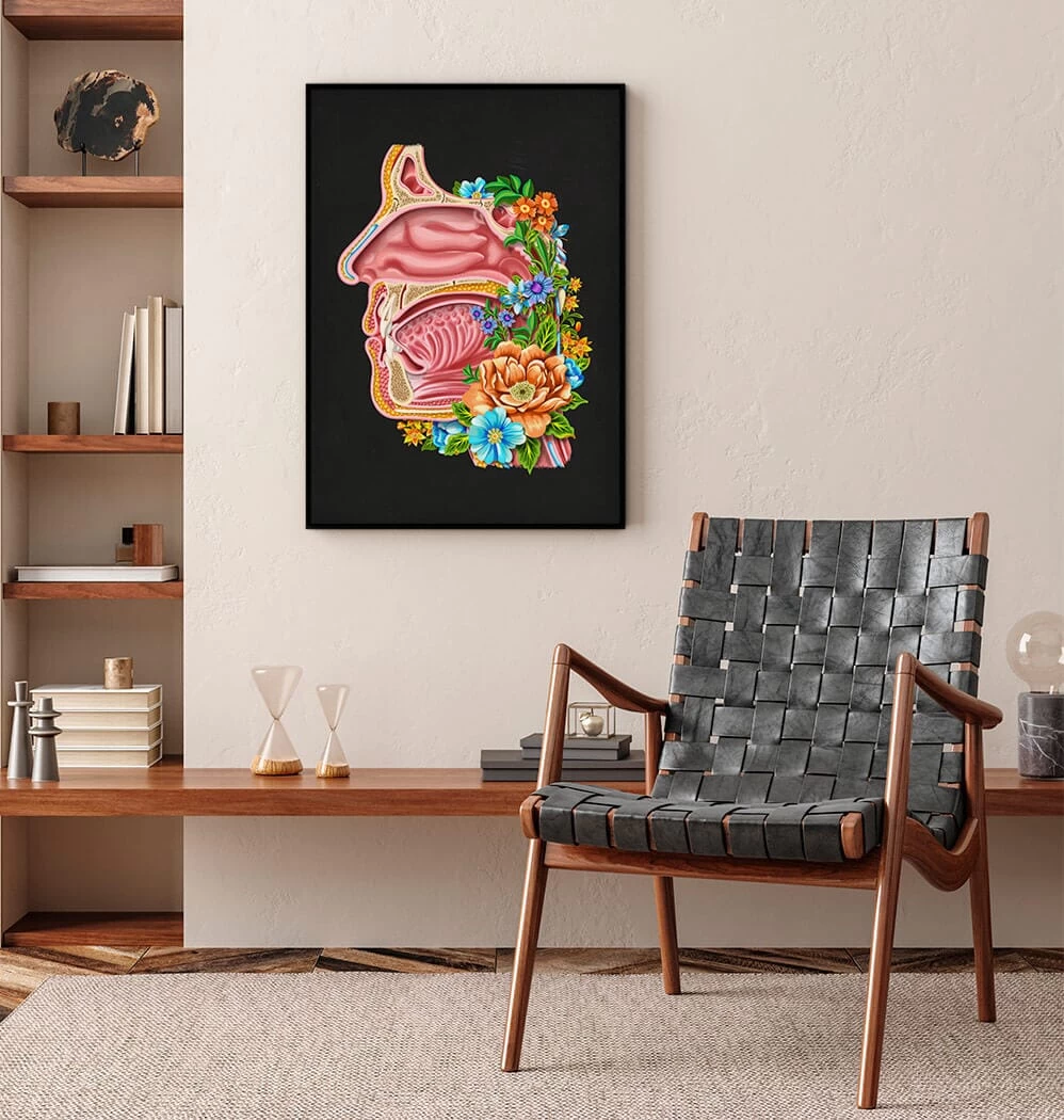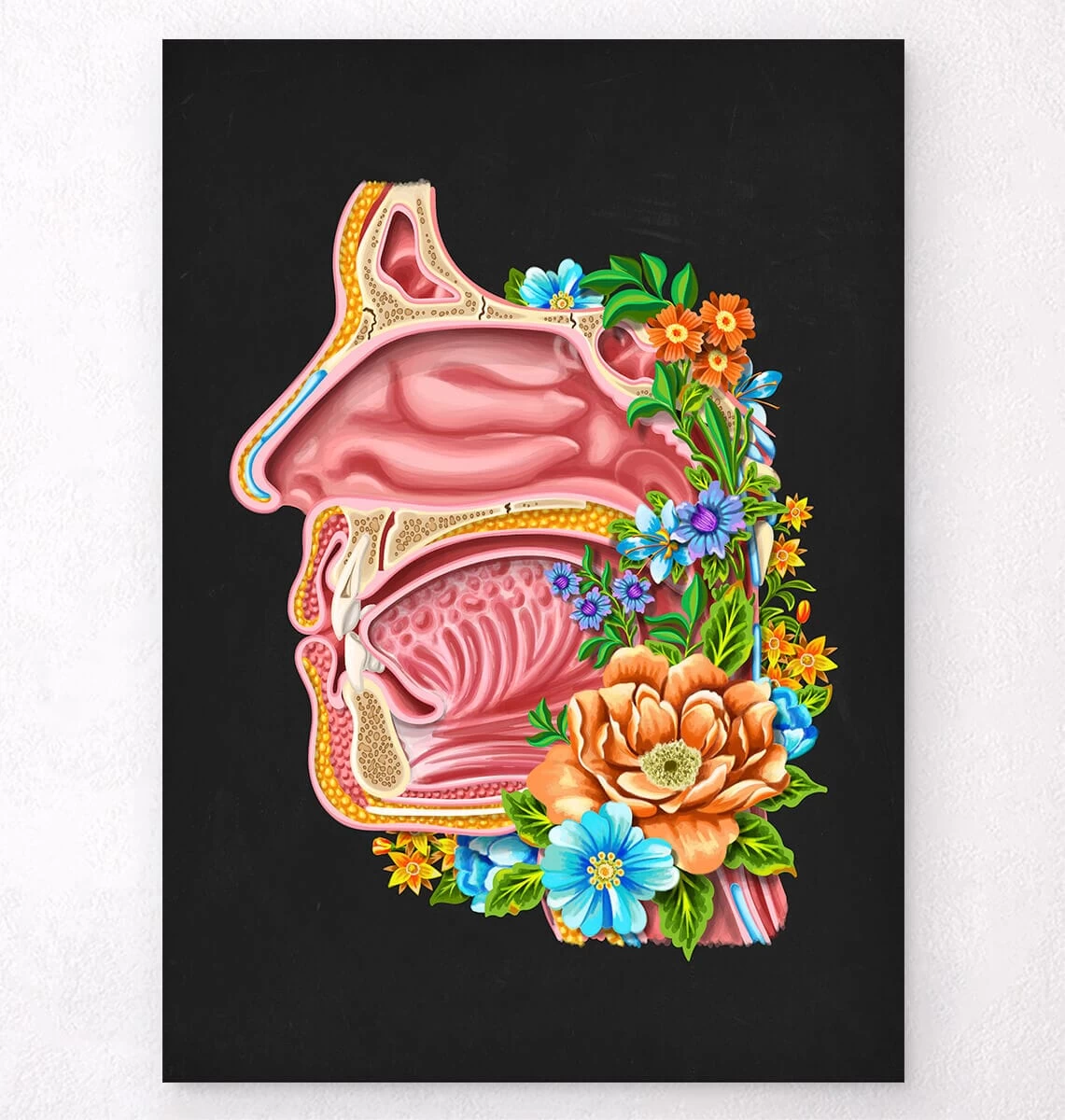 Also available in white and vintage colors. This nasal cavity anatomy art print is a wonderful addition to any interior and will make a perfect gift for doctors, nurses and medical students