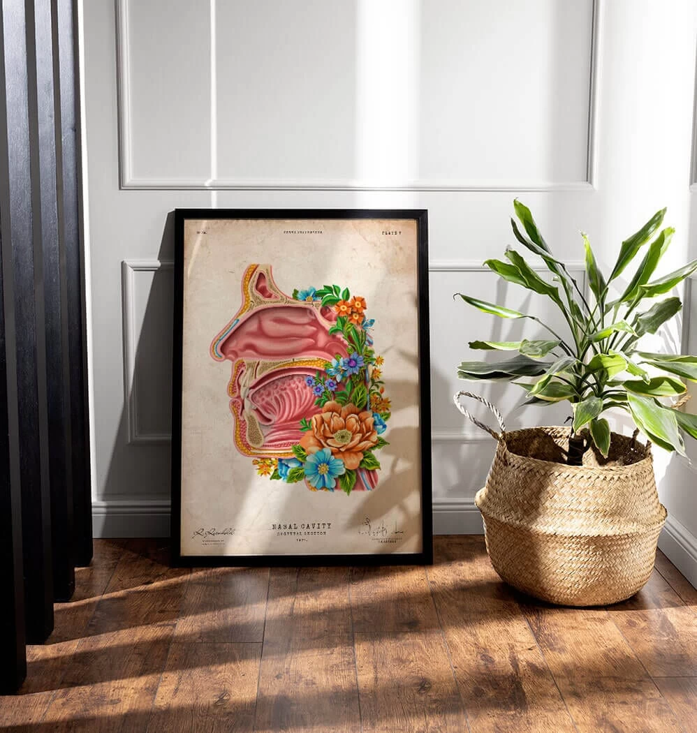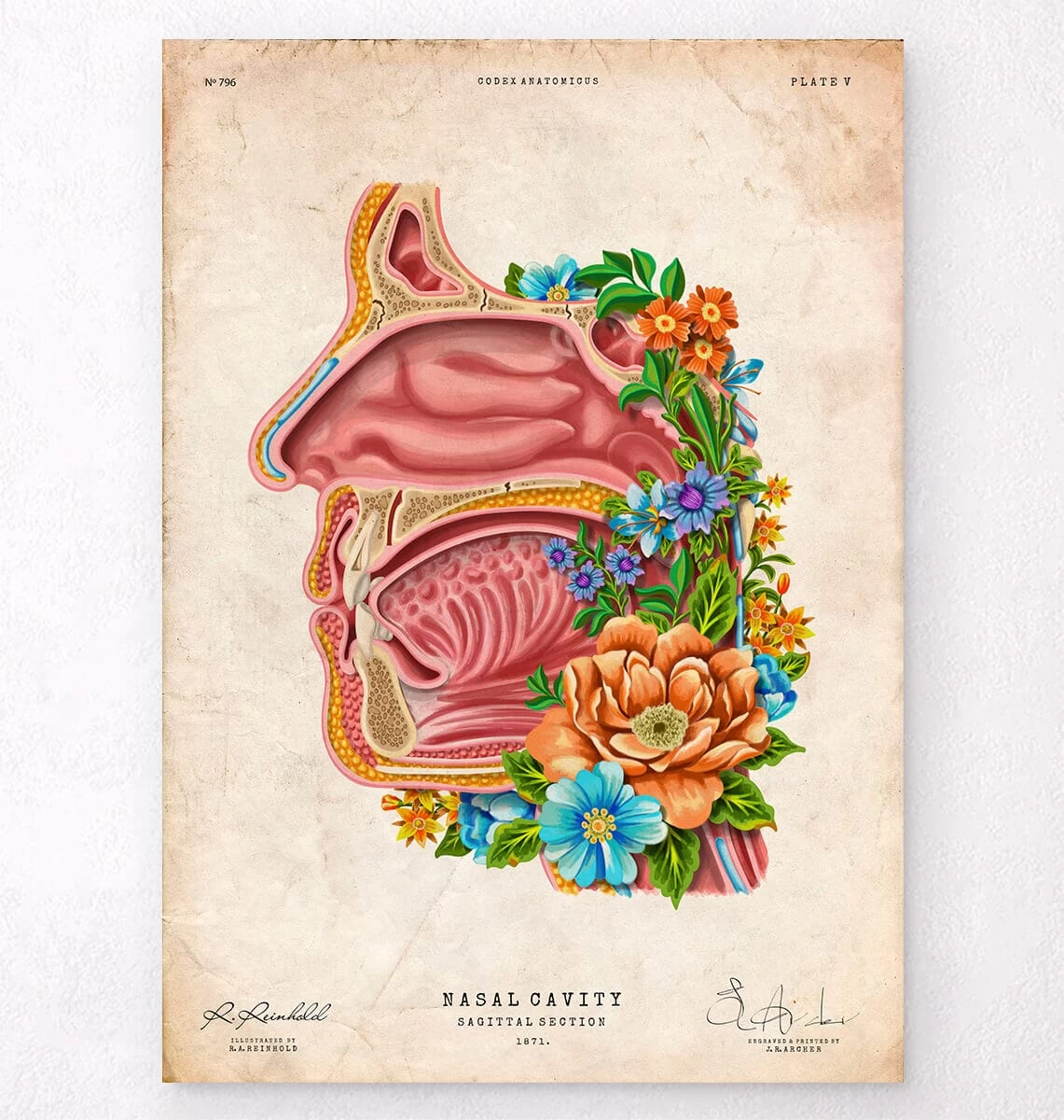 Also available in black and white colors. This nasal cavity anatomy art print is a wonderful addition to any interior and will make a perfect gift for doctors, nurses and medical students