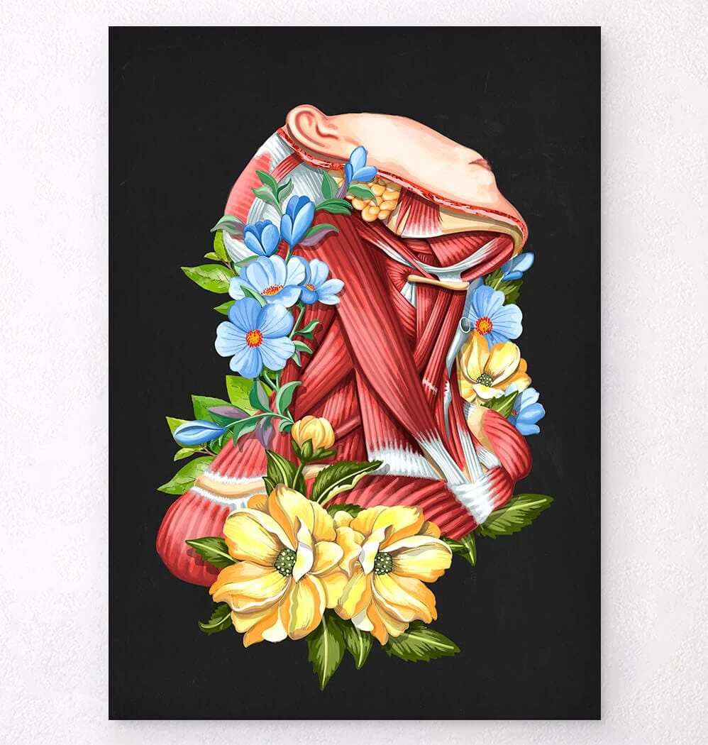 Also available on white and vintage backgrounds. This neck anatomy art print is a wonderful addition to any interior and will make a perfect gift for doctors, nurses and medical students