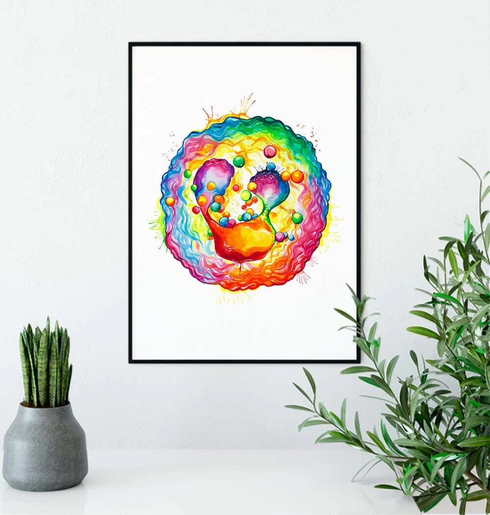 This white blood cell art print is a wonderful addition to any interior and will make a perfect gift for biomed, doctors, nurses and medical students