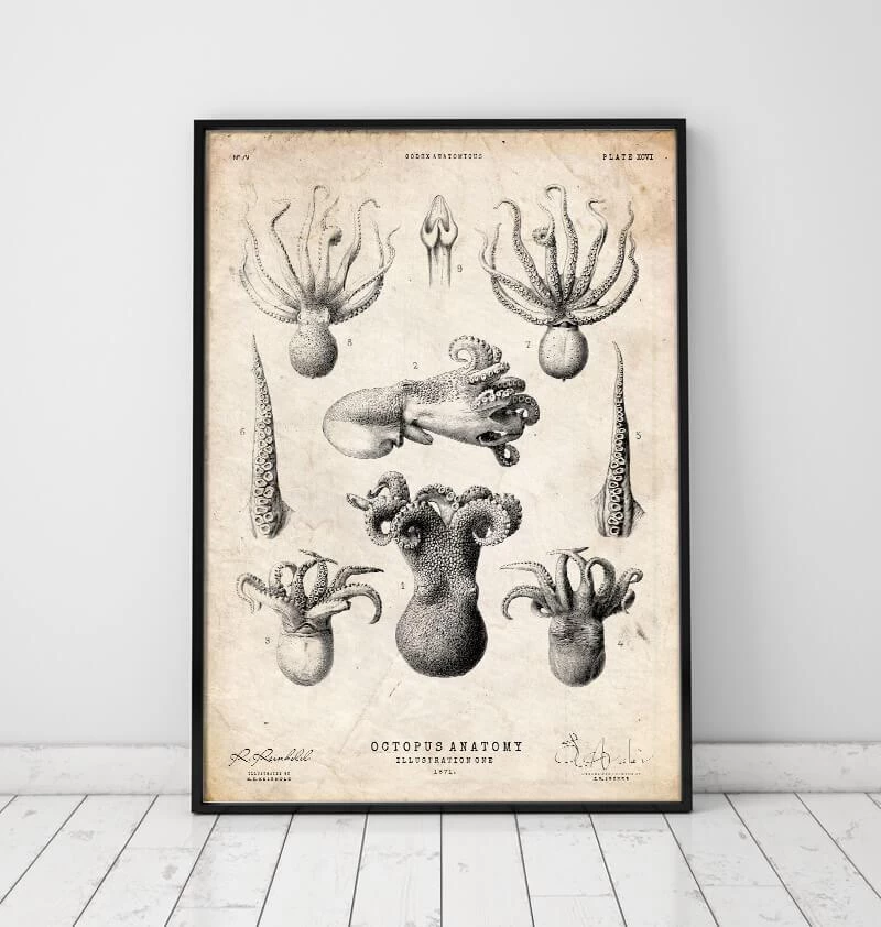 This octopus anatomy art print is a wonderful addition to any interior and will make a perfect gift for marine biologists