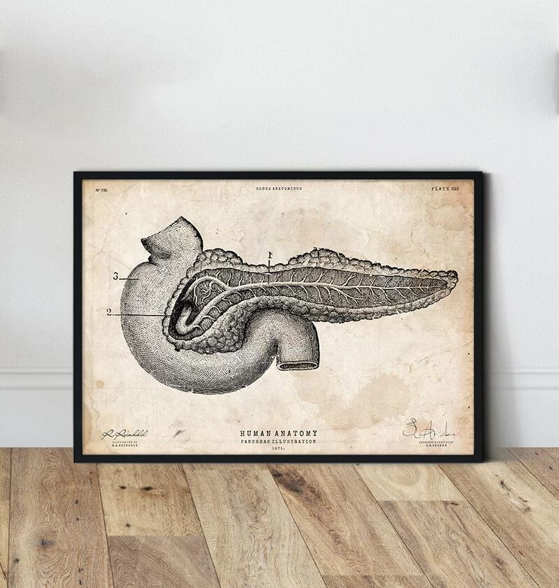 This pancreas anatomy art print is a wonderful addition to any interior and will make a perfect gift for doctors, nurses and medical students