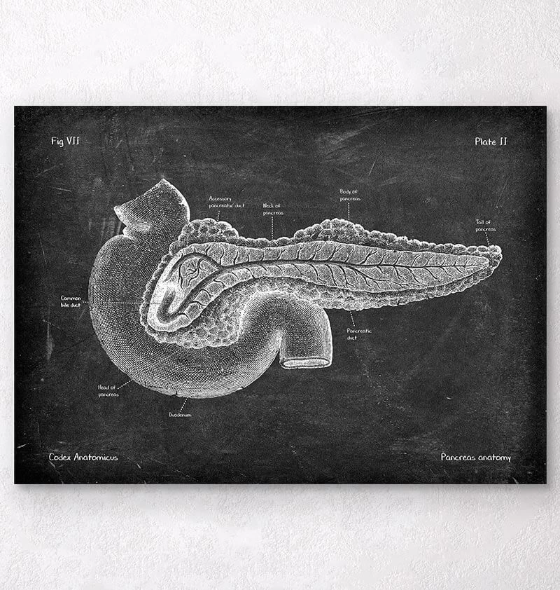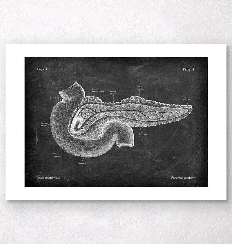 This pancreasย anatomy art printย is a wonderful addition to any interior and will make a perfect gift for doctors, nurses and medical students