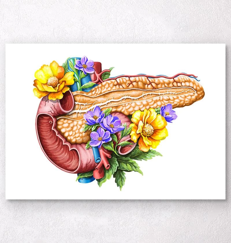 Also available on black and vintage backgrounds. This pancreas anatomy art print is a wonderful addition to any interior and will make a perfect gift for doctors, nurses and medical students