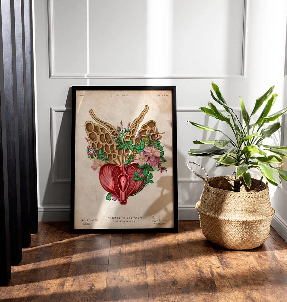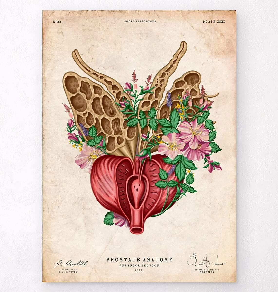 Also available on white and black backgrounds. This prostate anatomy art print is a wonderful addition to any interior and will make a perfect gift for doctors, nurses and medical students