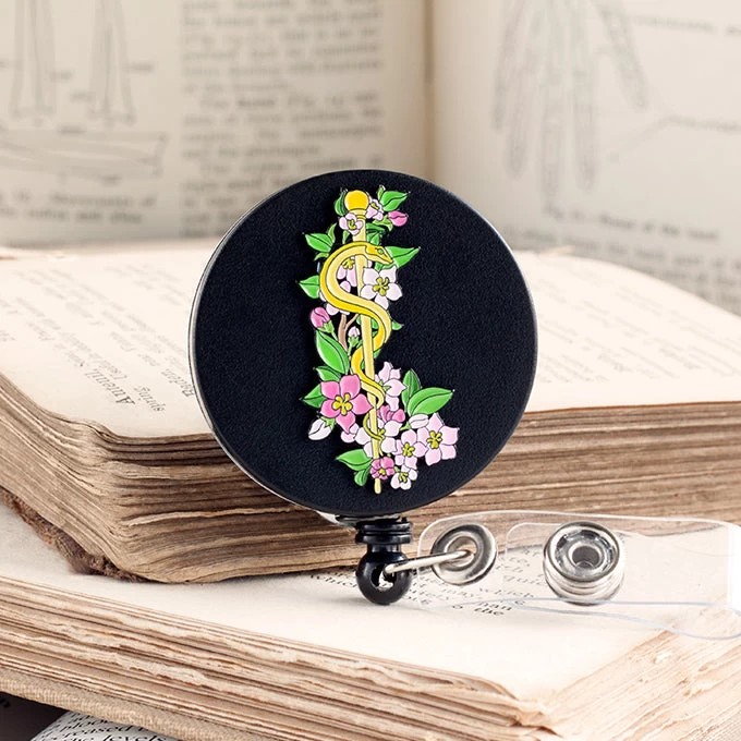 Rod of Asclepius retractable badge reel
