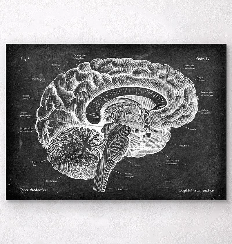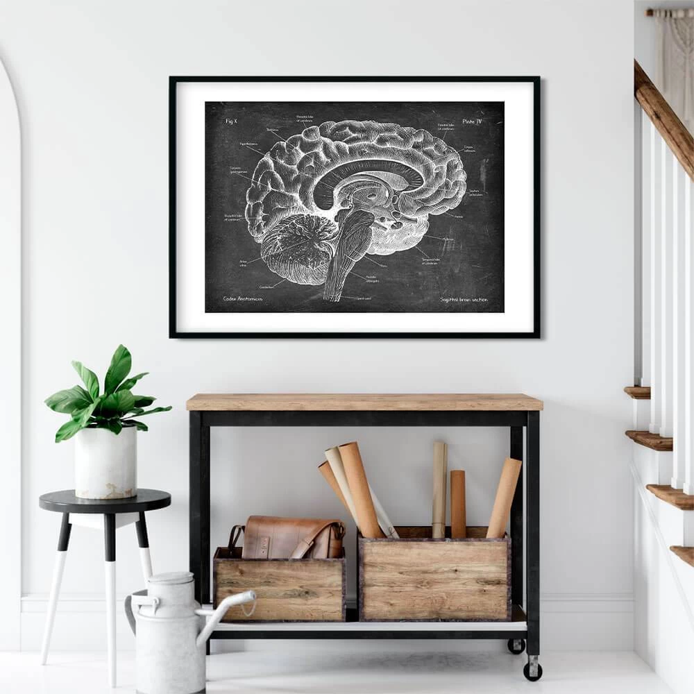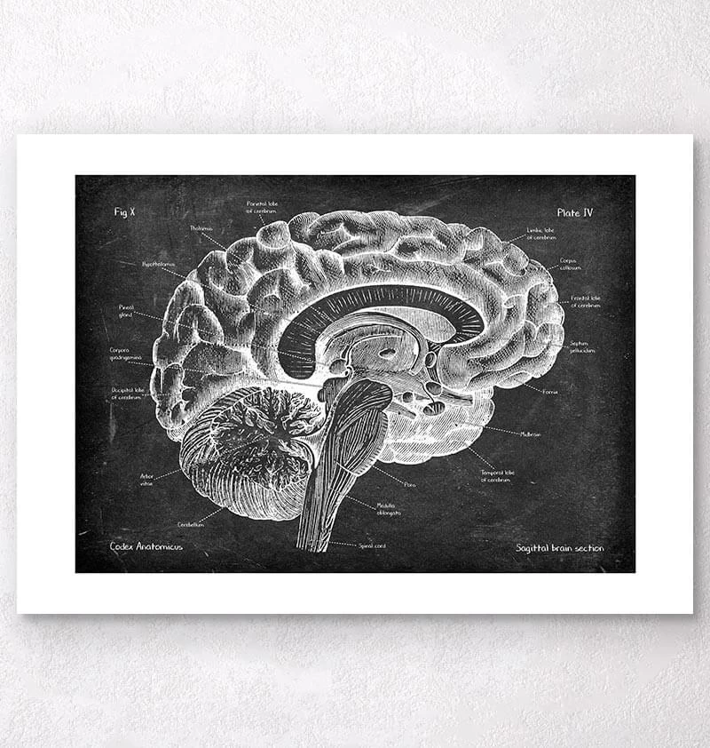 This sagittal brain anatomy art print is a wonderful addition to any interior and will make a perfect gift for doctors, nurses and medical students