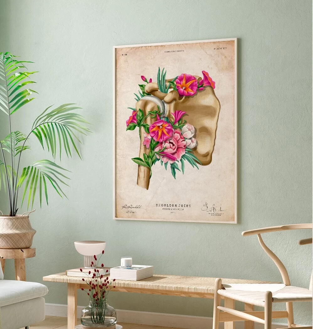 Also available on white and black backgrounds. This shoulder anatomy art print is a wonderful addition to any interior and will make a perfect gift for doctors, nurses and medical students