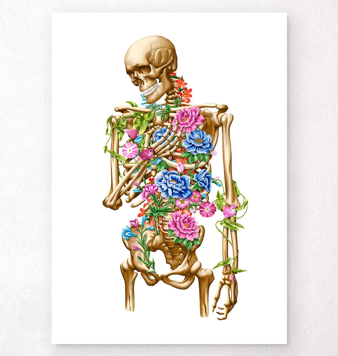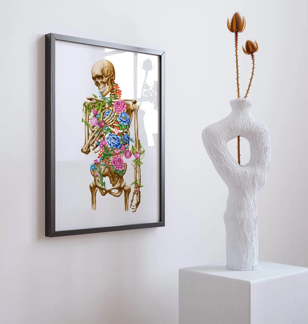 Also available on black and vintage backgrounds. This skeleton art print is a wonderful addition to any interior and will make a perfect gift for doctors, nurses and medical students