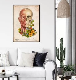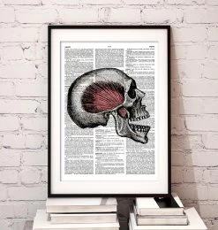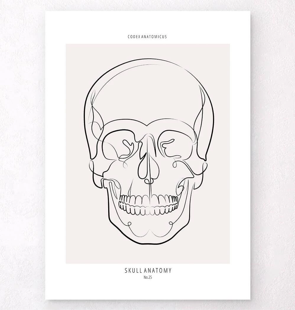 Minimalist skull anatomy illustration representing the anterior view. This premium art print is a perfect décor piece for a home, chiropractic studio, or physiotherapy room. It’s also a great gift for health workers and medical students.