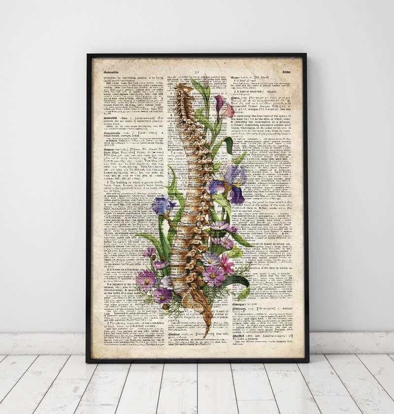This spine anatomy art print is a wonderful addition to any interior and will make a perfect gift for doctors, nurses, and medical students. Also on black, white, vintage backgrounds.