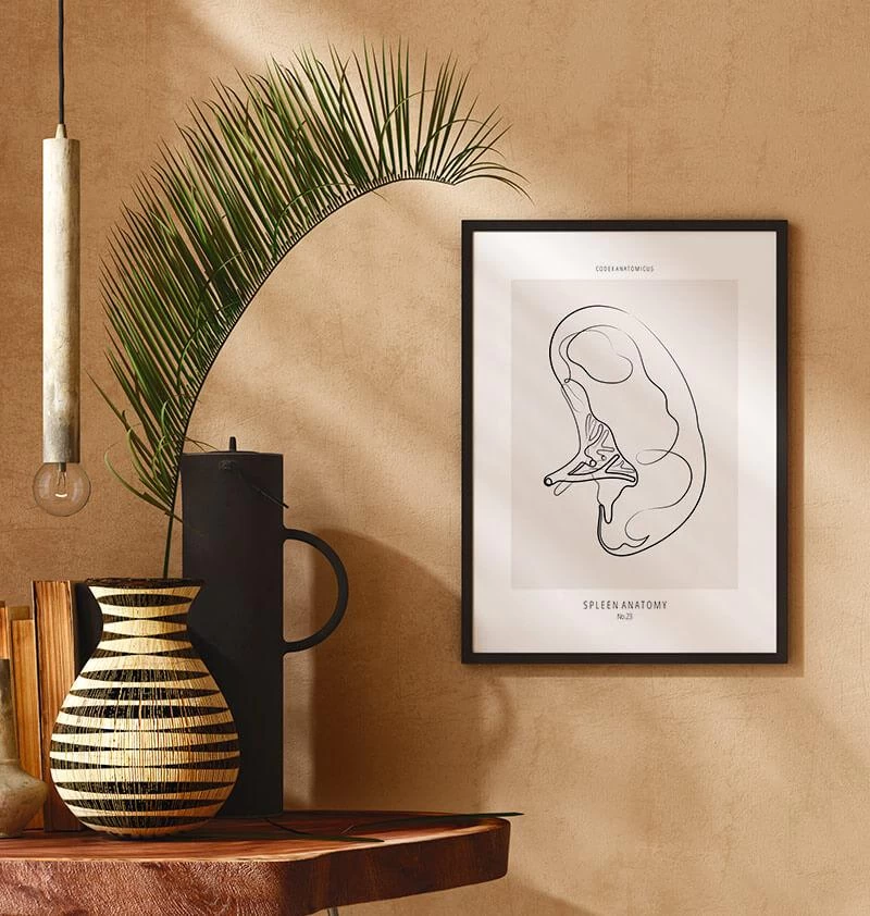 Line art illustration showing the anatomy of the spleen. This premium art print is a perfect dรฉcorย piece for a home, study space, or clinic. It’s also a great gift for hematologists, gastroenterologists, or medical students.