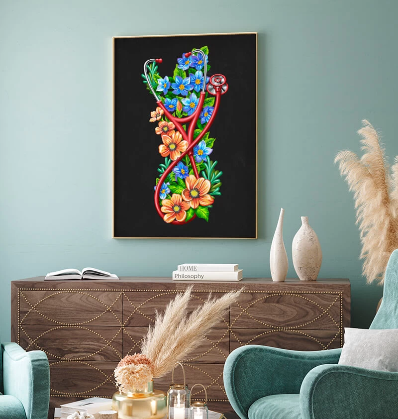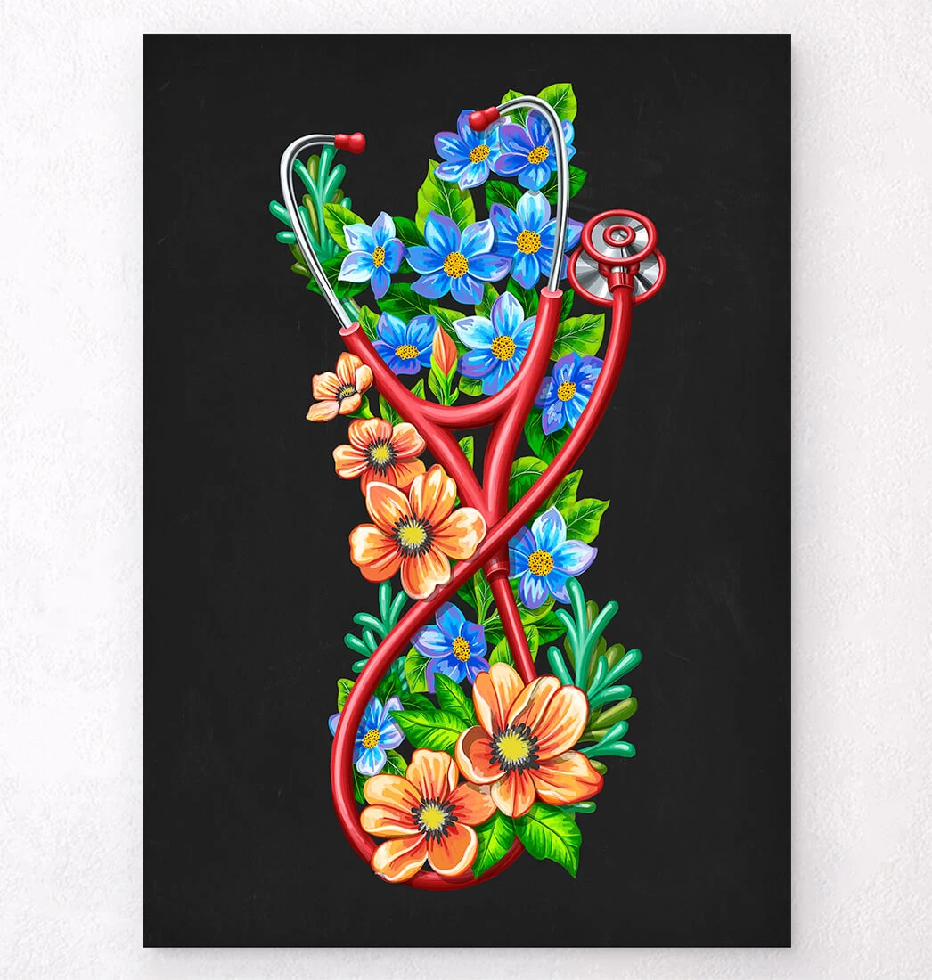 Also available on white background. This stethoscope art print is a wonderful addition to any interior and will make a perfect gift for doctors, nurses, and medical students.