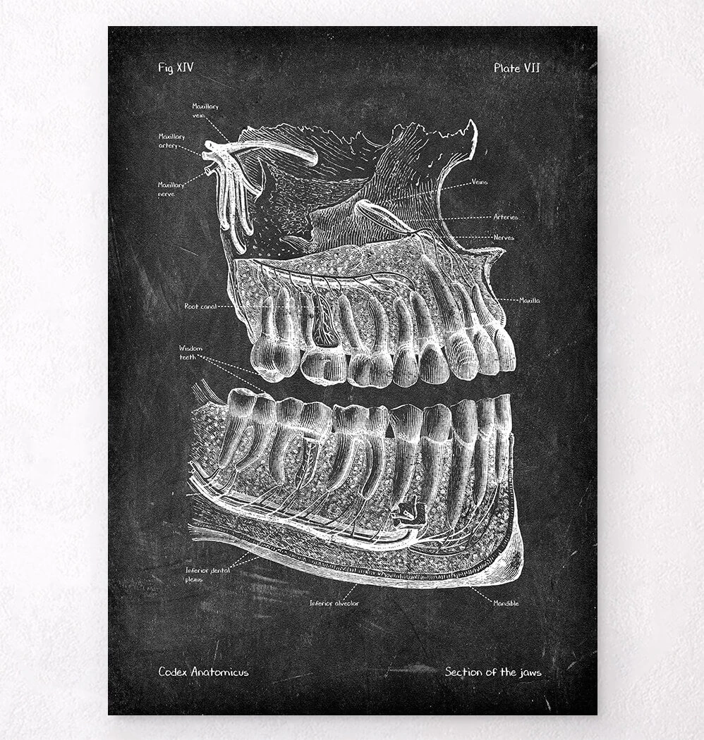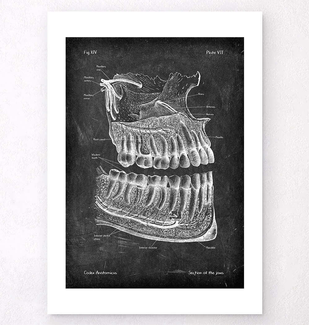 This dental anatomy art print is a wonderful addition to any interior and will make a perfect gift for dentists, dental nurses and students
