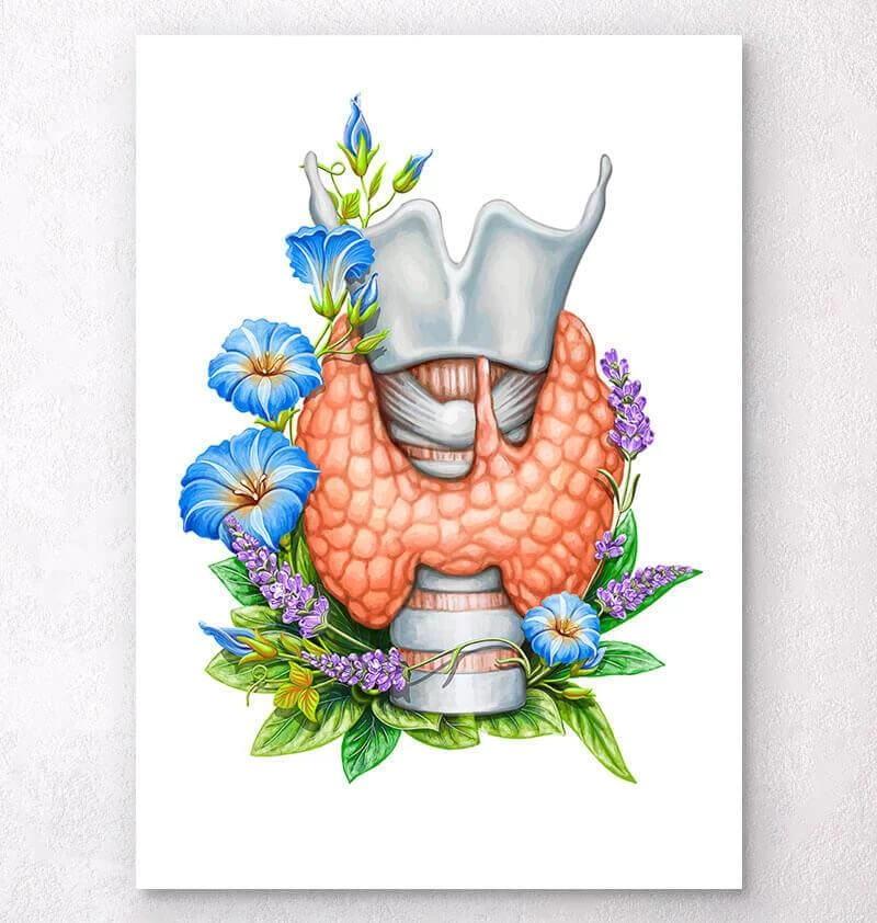 Also available on black and vintage backgrounds. Thyroid anatomy art print is a wonderful addition to any interior and will make a perfect gift for doctors, nurses, and medical students.