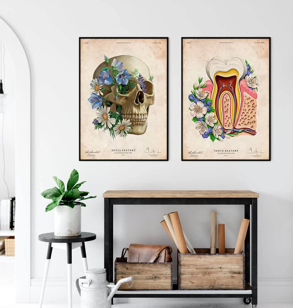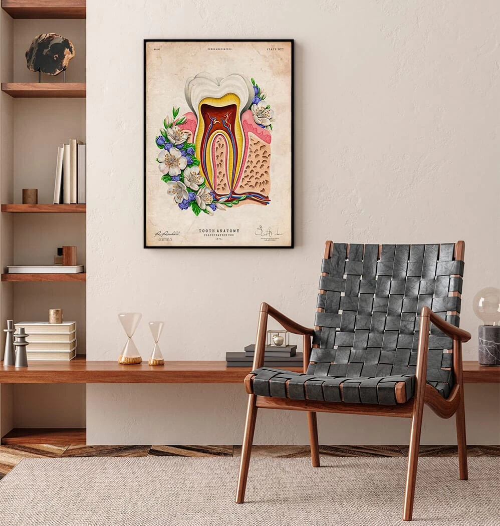 Also available on black and white backgrounds. This tooth anatomy art print is a wonderful addition to any interior and will make a perfect gift for gift for dentists, nurses, and dentistry students