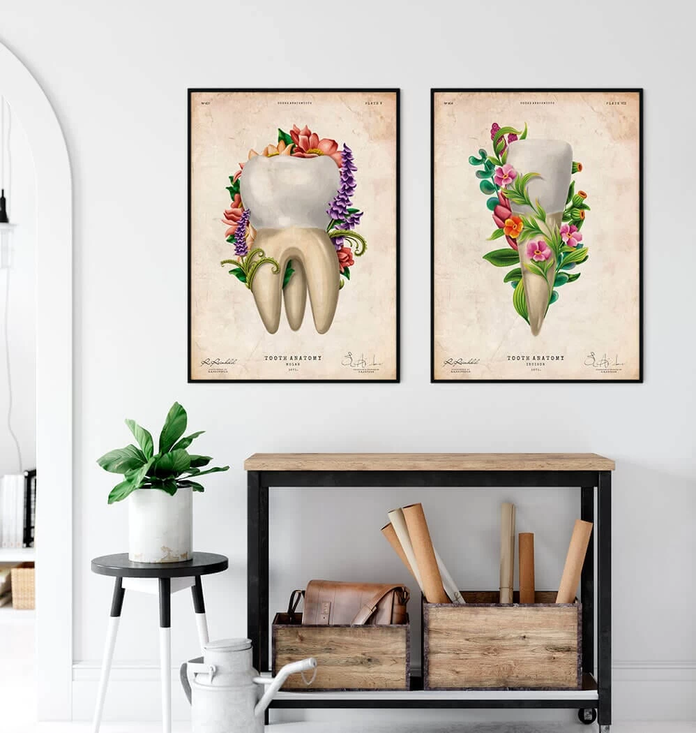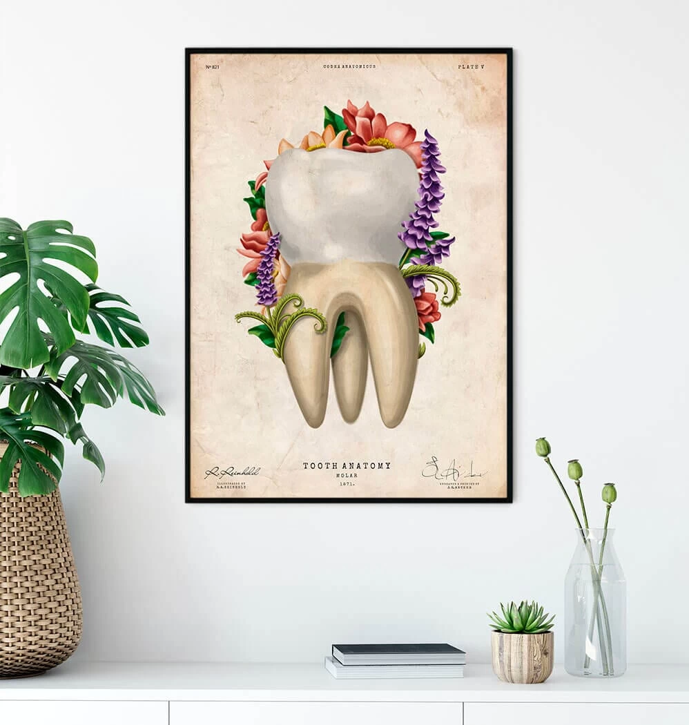 Also available on black and white backgrounds. This tooth anatomy art print is a wonderful addition to any interior and will make a perfect gift for gift for dentists, nurses, and dentistry students