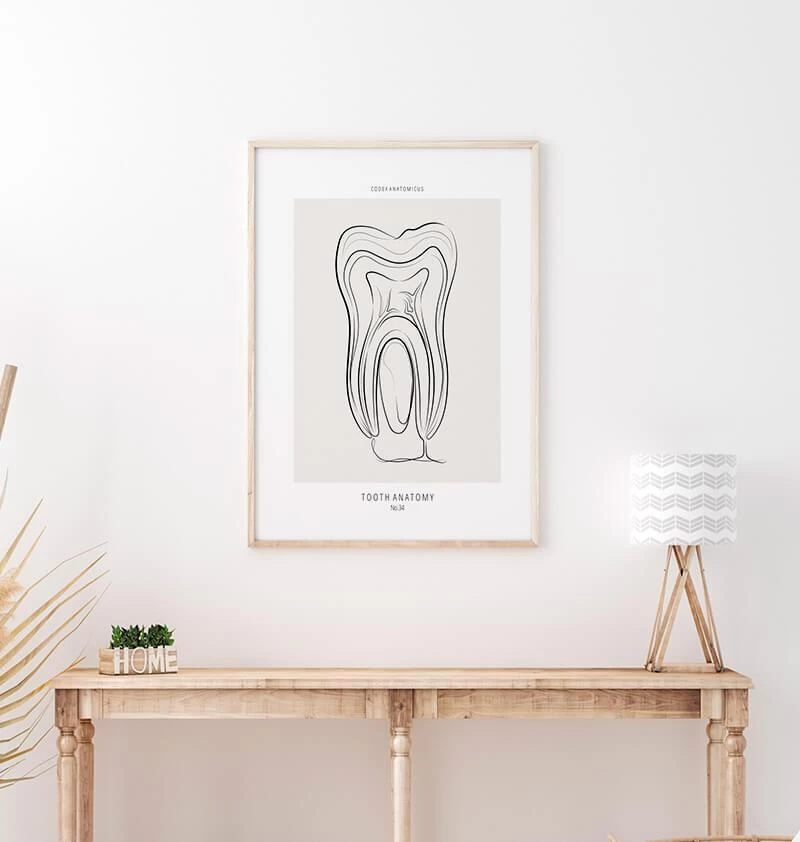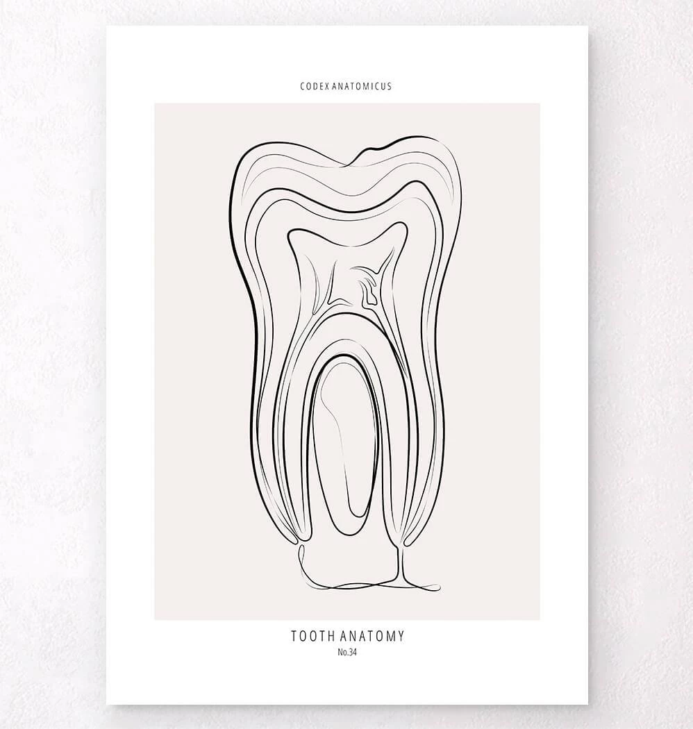Line art illustration showing the anatomy of the tooth This premium art print is a perfect décor piece for a home, study space, or dental clinic. It’s also a great gift for dentists, hygienists, and dental students.