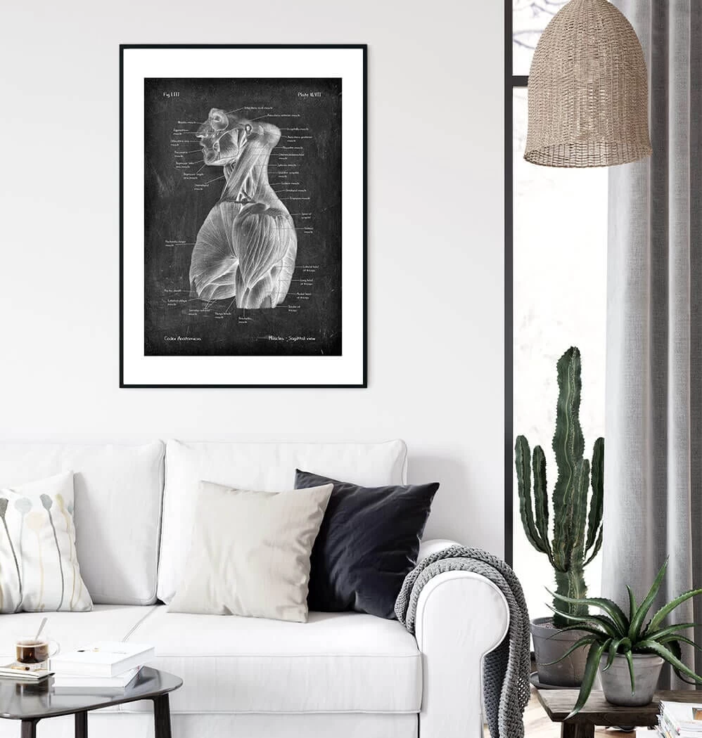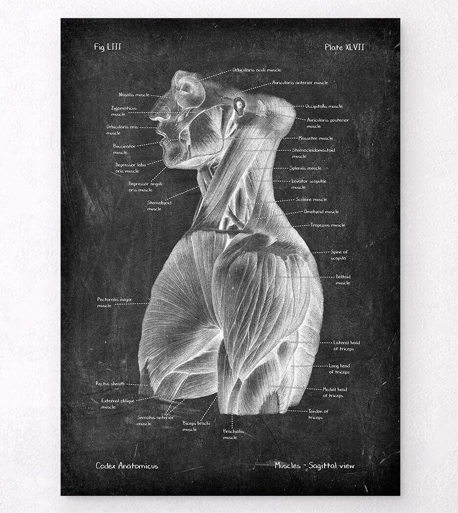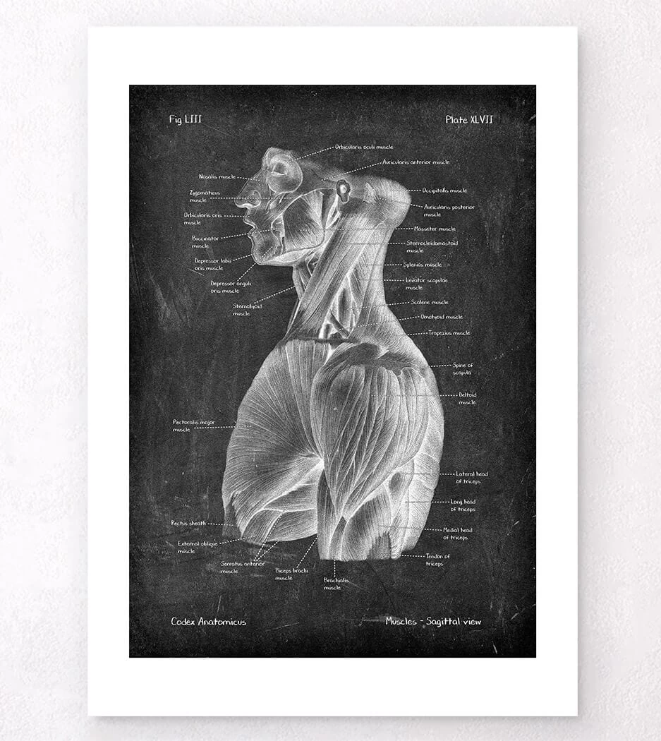 Thisย sideย view torso muscles anatomy art print is a wonderful addition to any interior and will make a perfect gift for doctors, nurses and medical students