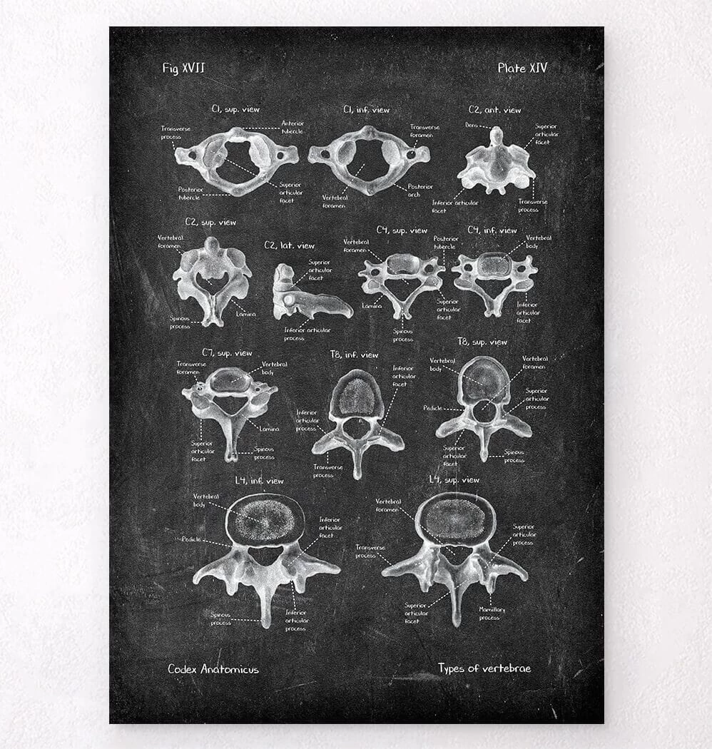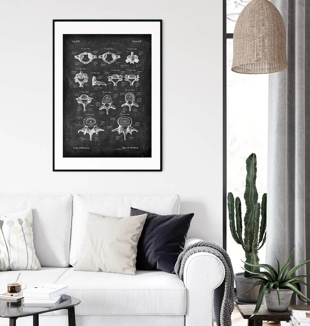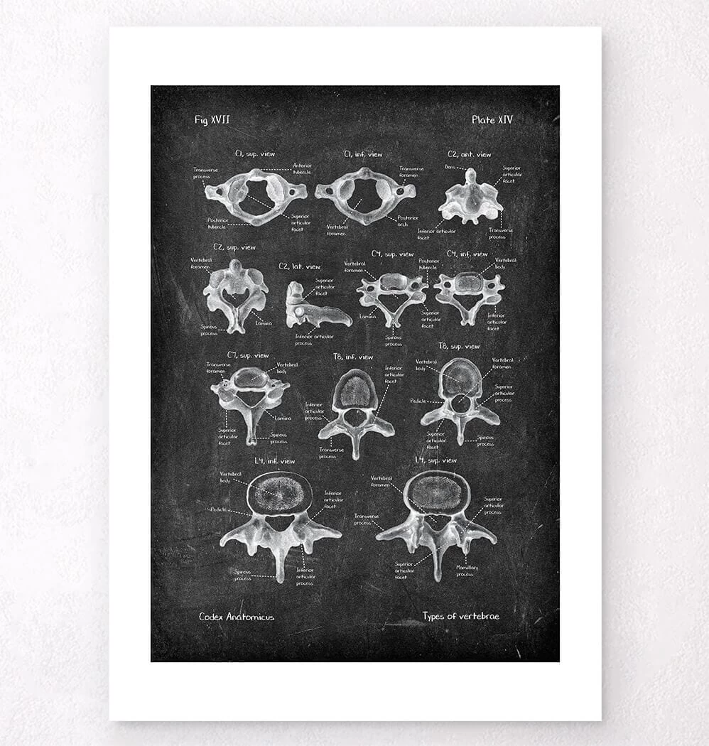 This vertebrae anatomy art print is a wonderful addition to any interior and will make a perfect gift for doctors, nurses and medical students