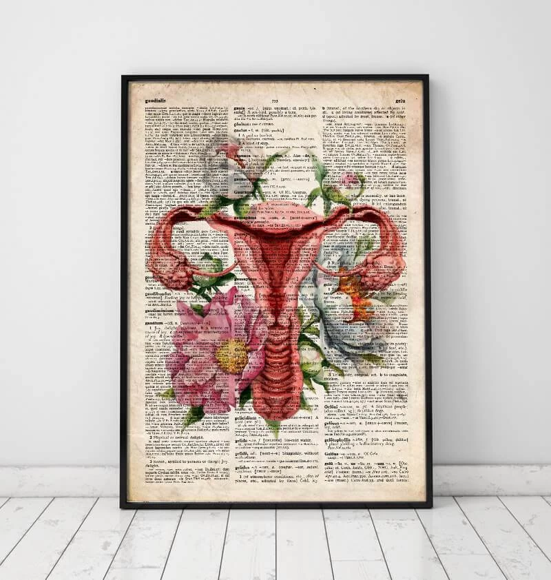 This uterus anatomy art print is a wonderful addition to any interior and will make a perfect gift for doctors, nurses, and medical students. Also available on black, vintage, or plain white backgrounds.