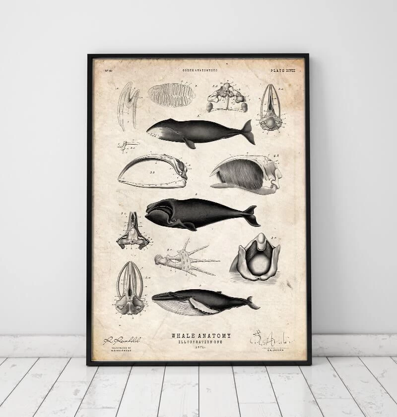 This whale anatomy art print is a wonderful addition to any interior and will make a perfect gift for marine biologists